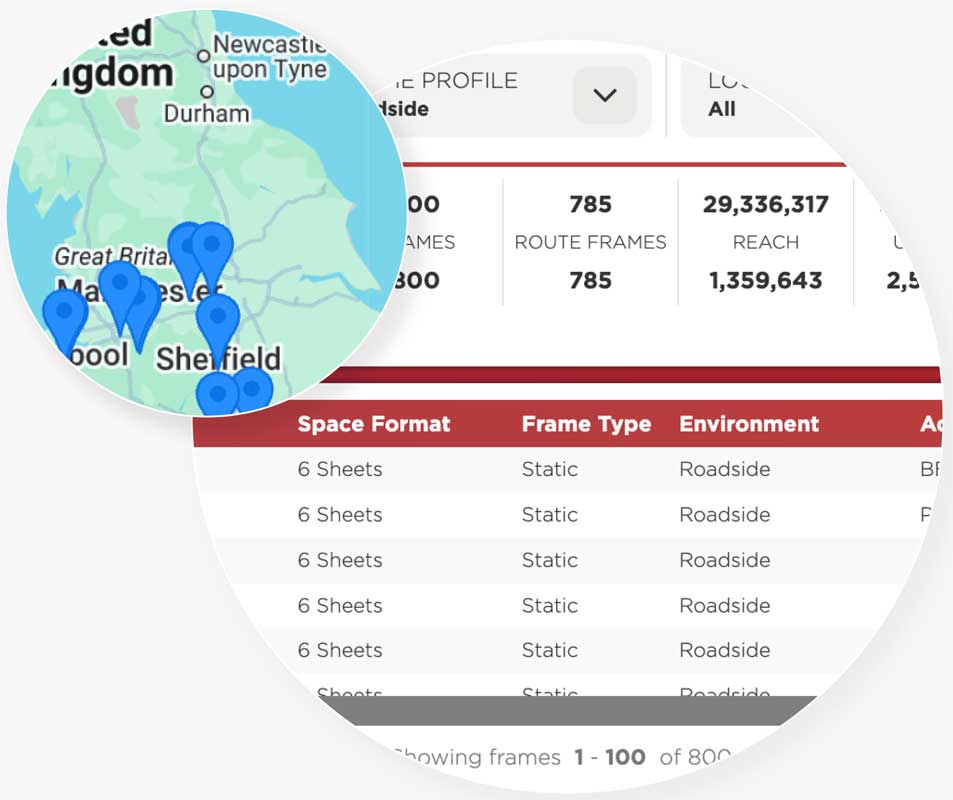 Book a demoPurl facilitates the exploration of OOH inventory and audiences by creatively building ‘Plots’ of inventory, maps, tables and audience data/visualisations that enables discovery of the right frames that reach the right audiences at the right times to satisfy an OOH media brief.